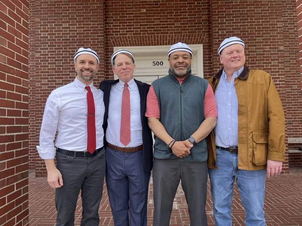 Dr. Eric Olofson, Professor of Psychology; Dr. Ethan Hollander, Professor of Political Science; Kim King II, Assistant Director of the Malcolm X Institute of Black Studies; and Dr. Gaylon Ross, Professor of Physics, after their initiation in April 2025.